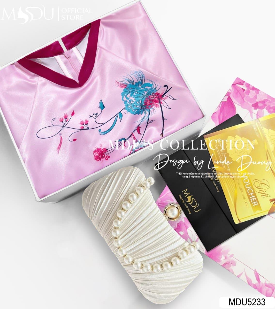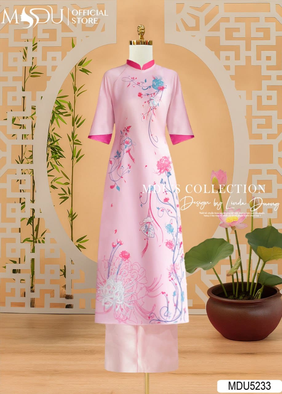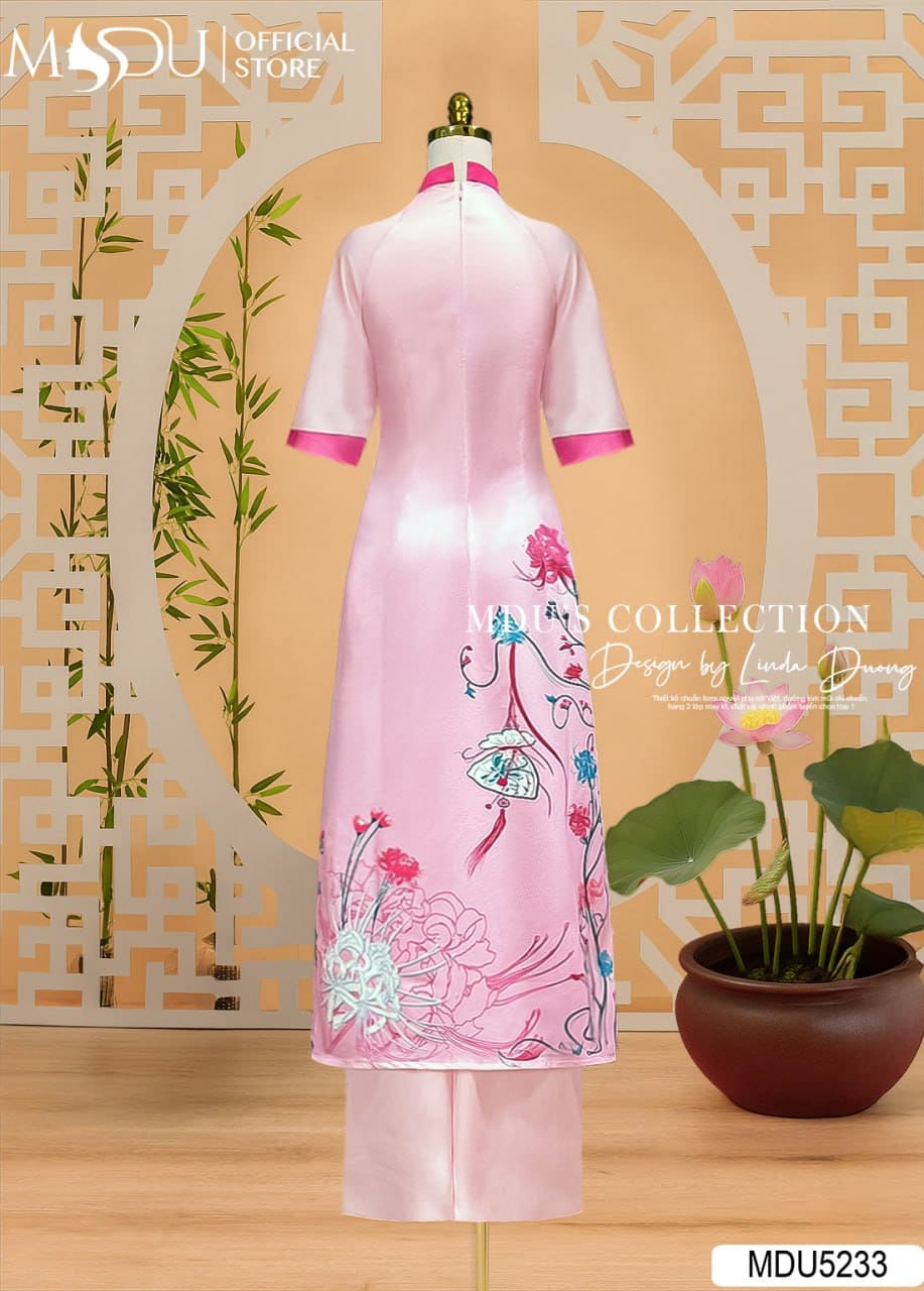 Với sắc hồng pastel ngọt ngào và chi tiết hoa bướm tinh xảo, MDU5233 là lựa chọn hoàn hảo cho dịp lễ, Tết, chụp ảnh kỷ niệm hay tham dự các sự kiện truyền thống. Thiết kế tôn vinh vẻ đẹp đằm thắm và dịu dàng của người phụ nữ Việt, đồng thời mang lại sự tự tin và thoải mái trong từng khoảnh khắc xuất hiện.