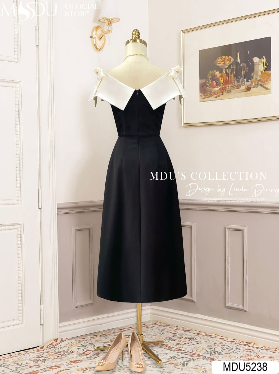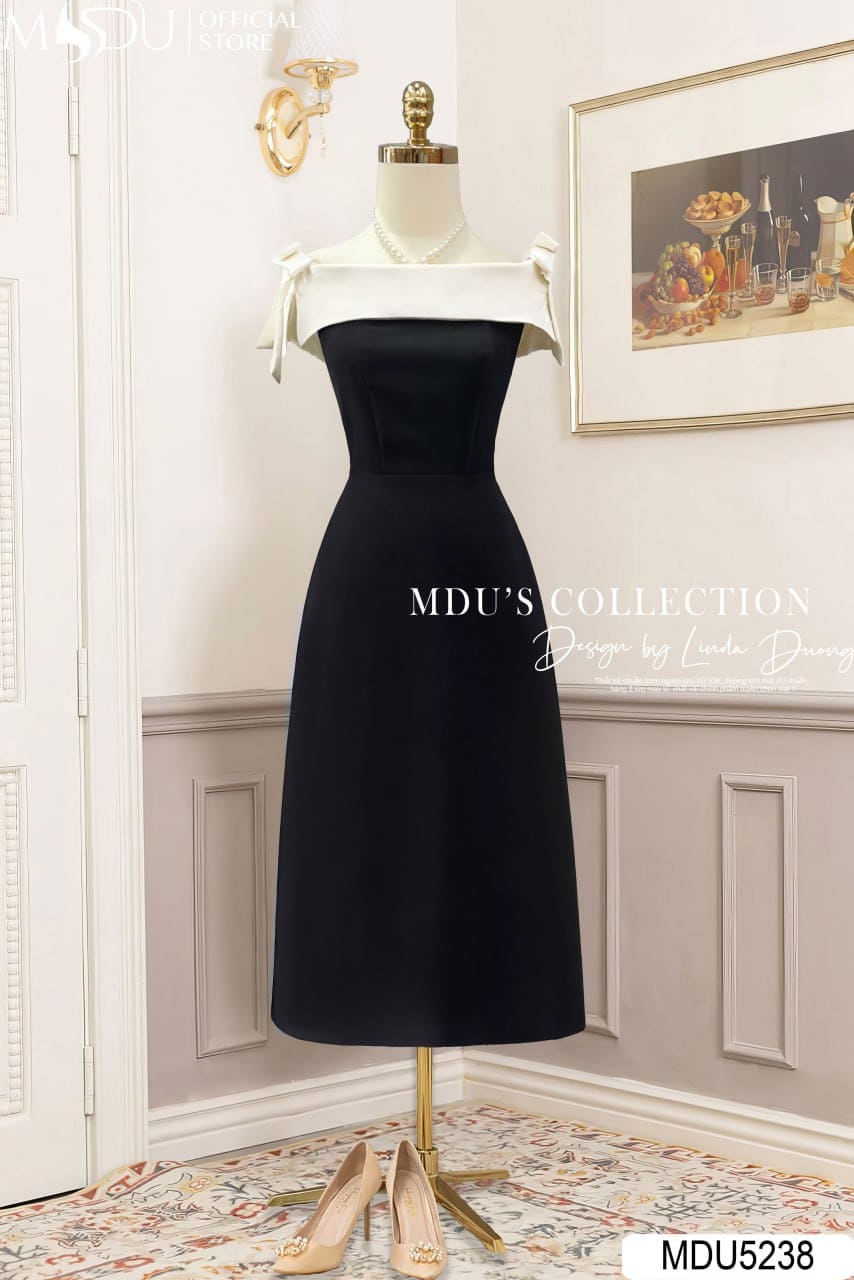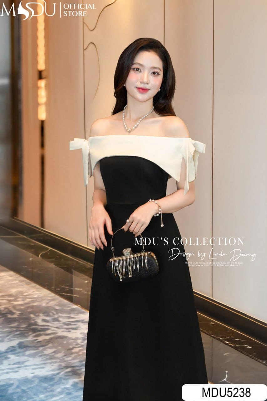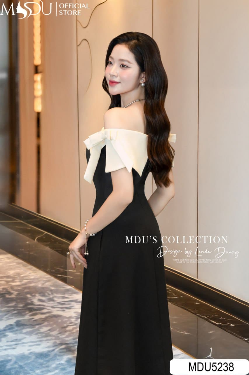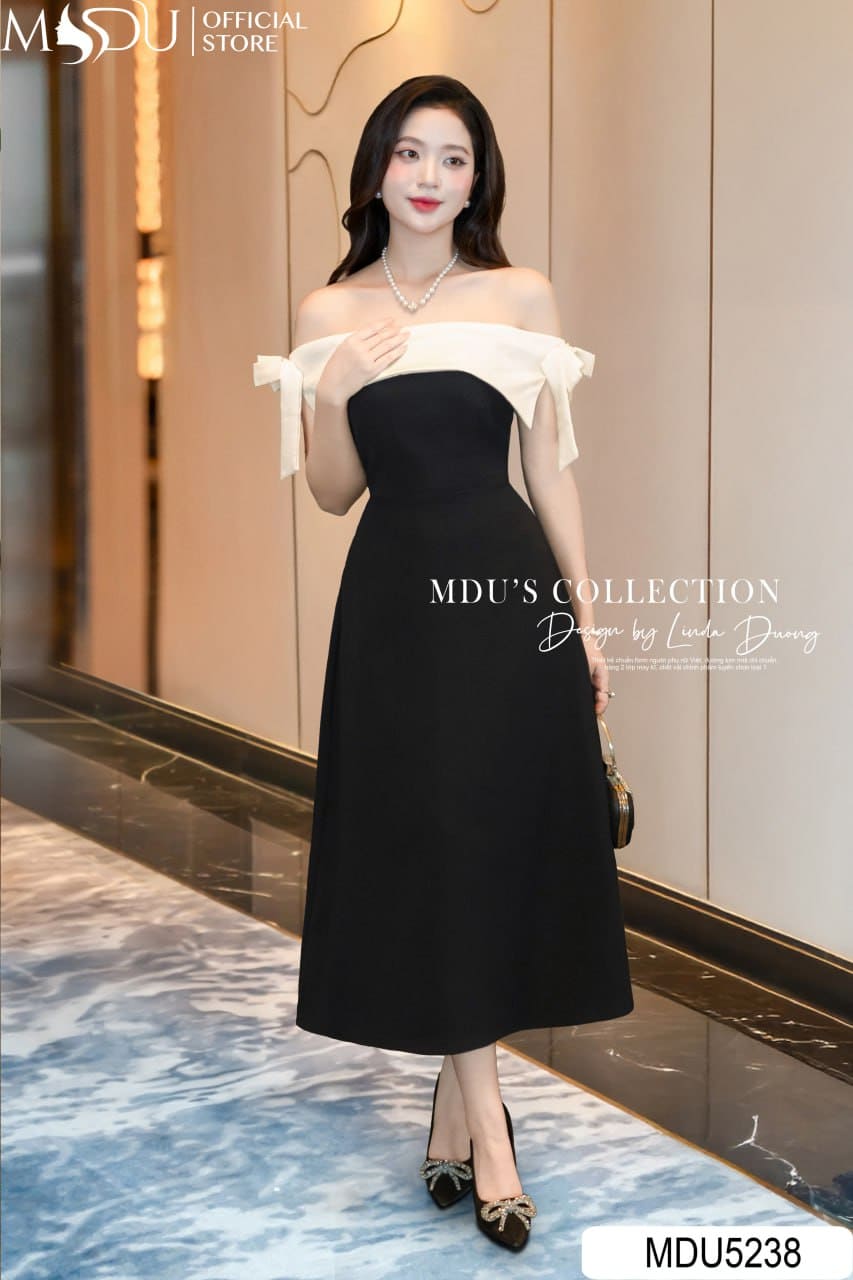 Váy Thiết Kế MDU5238 Đầm Mango Ý Trễ Vai Nơ Bản To Dáng Xòe Midi Duyên Dáng Và Thanh Lịch