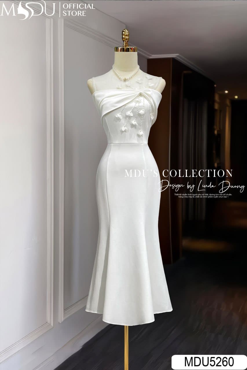 Với phom dáng ôm nhẹ ở thân trên và xòe dần về phía chân váy, MDU5260 mang đến sự cân bằng hoàn hảo giữa quyến rũ và thanh lịch. Đây chính là lựa chọn lý tưởng cho các bữa tiệc, sự kiện hay những dịp quan trọng, nơi bạn muốn tỏa sáng bằng vẻ đẹp tinh khôi, quý phái nhưng vẫn đầy tự tin và duyên dáng.
