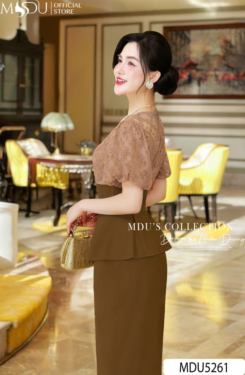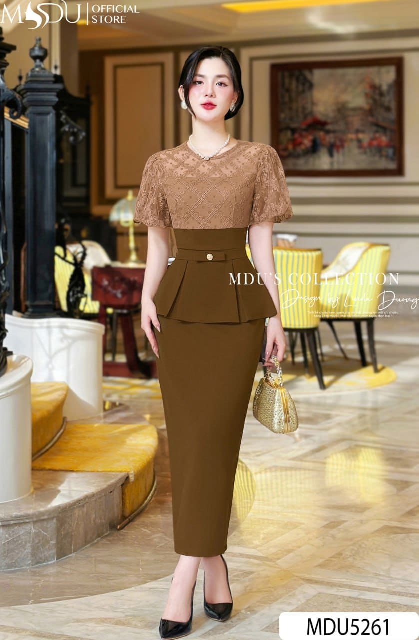 MDU Fashion trân trọng giới thiệu thiết kế MDU5261 – một mẫu đầm mang phong thái thanh lịch, hiện đại và đầy cuốn hút. Được may từ chất liệu mango Ý cao cấp, váy giữ form chuẩn chỉnh nhưng vẫn mềm mại trên từng bước di chuyển, tạo nên vẻ sang trọng tự nhiên. Phần thân trên phối ren hoa tinh xảo chính là điểm nhấn, tôn bật sự nữ tính quý phái cho người mặc.