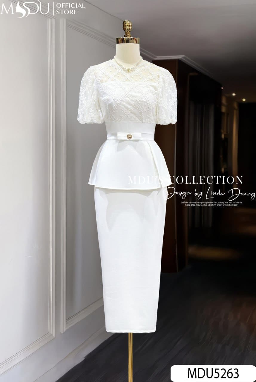 Sắc trắng kem tinh khôi của MDU5263 khiến mẫu váy trở thành lựa chọn lý tưởng cho tiệc sang trọng, lễ cưới, sự kiện hay những buổi gặp gỡ quan trọng. Đây là thiết kế tôn vinh vẻ đẹp quý phái, giúp nàng tự tin tỏa sáng trong mọi khoảnh khắc – duyên dáng, thời thượng và đầy cuốn hút.