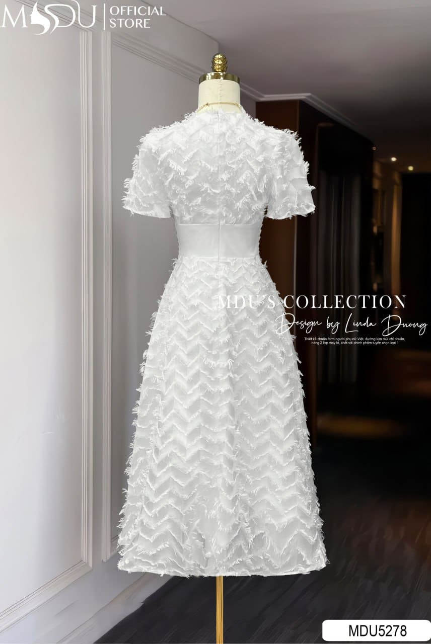 Sắc trắng tinh khôi cùng họa tiết zigzag sống động giúp MDU5278 trở thành lựa chọn lý tưởng cho những buổi tiệc tối, sự kiện quan trọng hay các buổi hẹn hò sang trọng. Đây không chỉ là một thiết kế thời trang, mà còn là tuyên ngôn về vẻ đẹp thanh lịch, tự tin và đầy cuốn hút của người phụ nữ hiện đại.