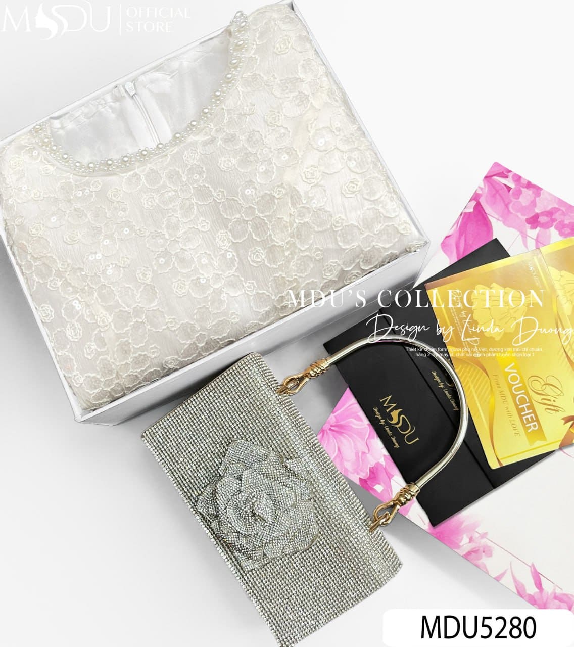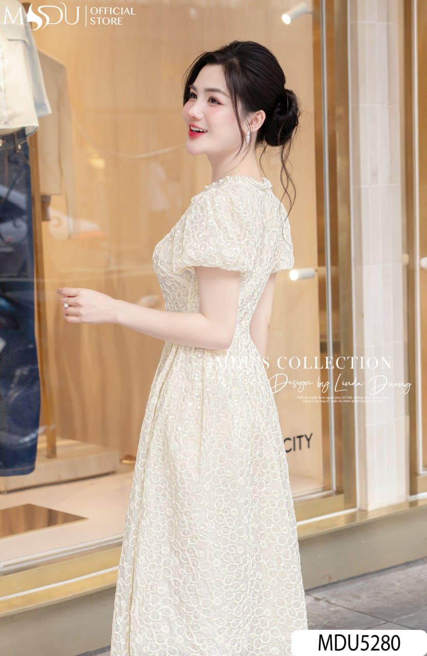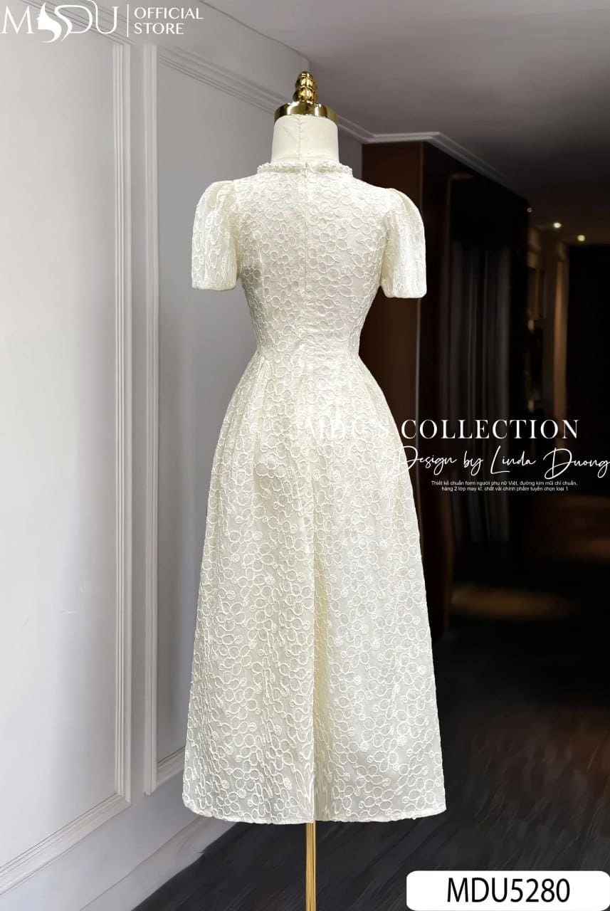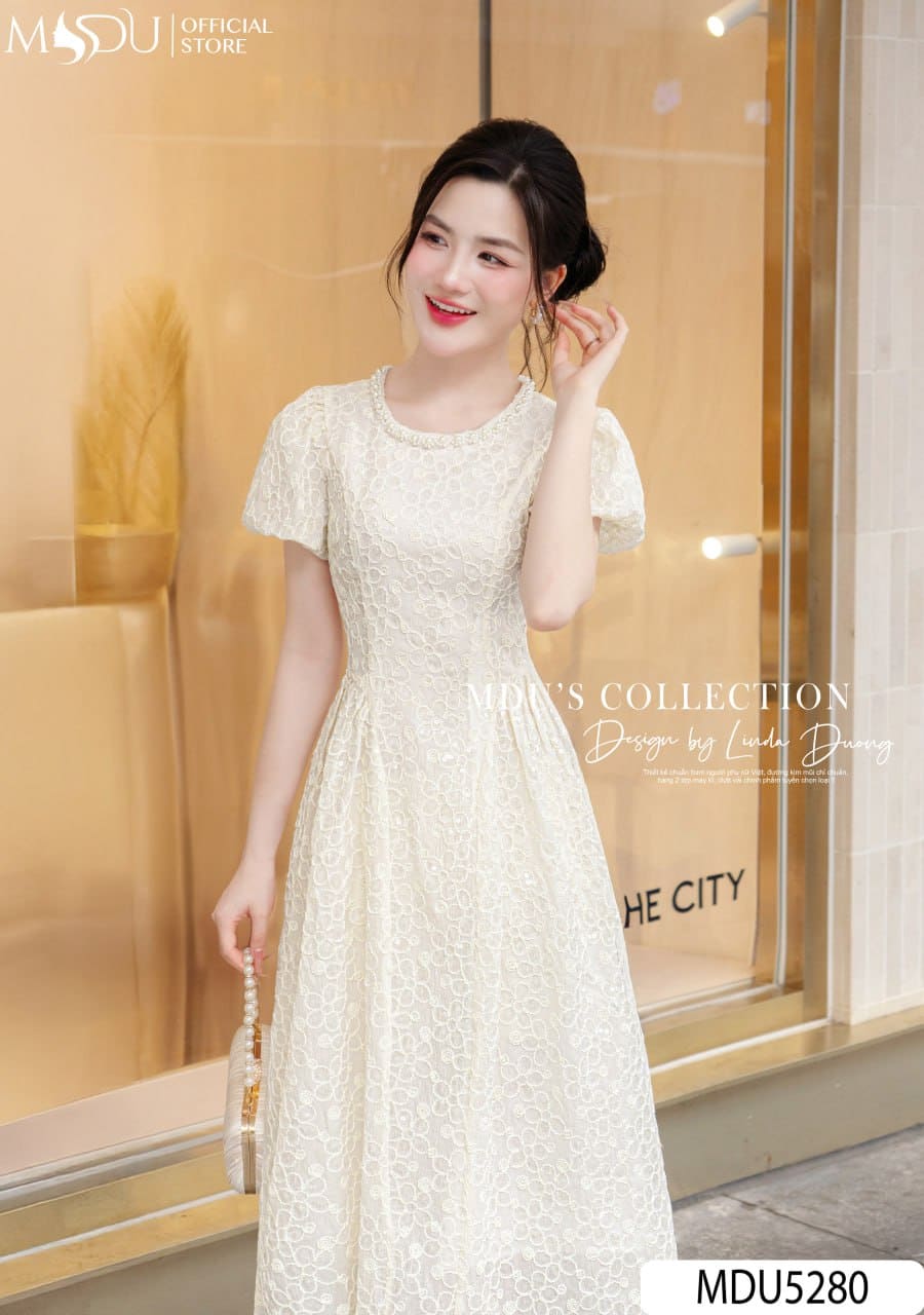 Sắc trắng ngà tinh khôi cùng chất ren thêu hoa nổi bật khiến MDU5280 trở thành lựa chọn hoàn hảo cho các buổi tiệc nhẹ, gặp gỡ bạn bè hay dạo phố cuối tuần. Đây không chỉ là một thiết kế váy, mà còn là lời tôn vinh vẻ đẹp dịu dàng, nữ tính và đầy tự tin của người phụ nữ hiện đại.