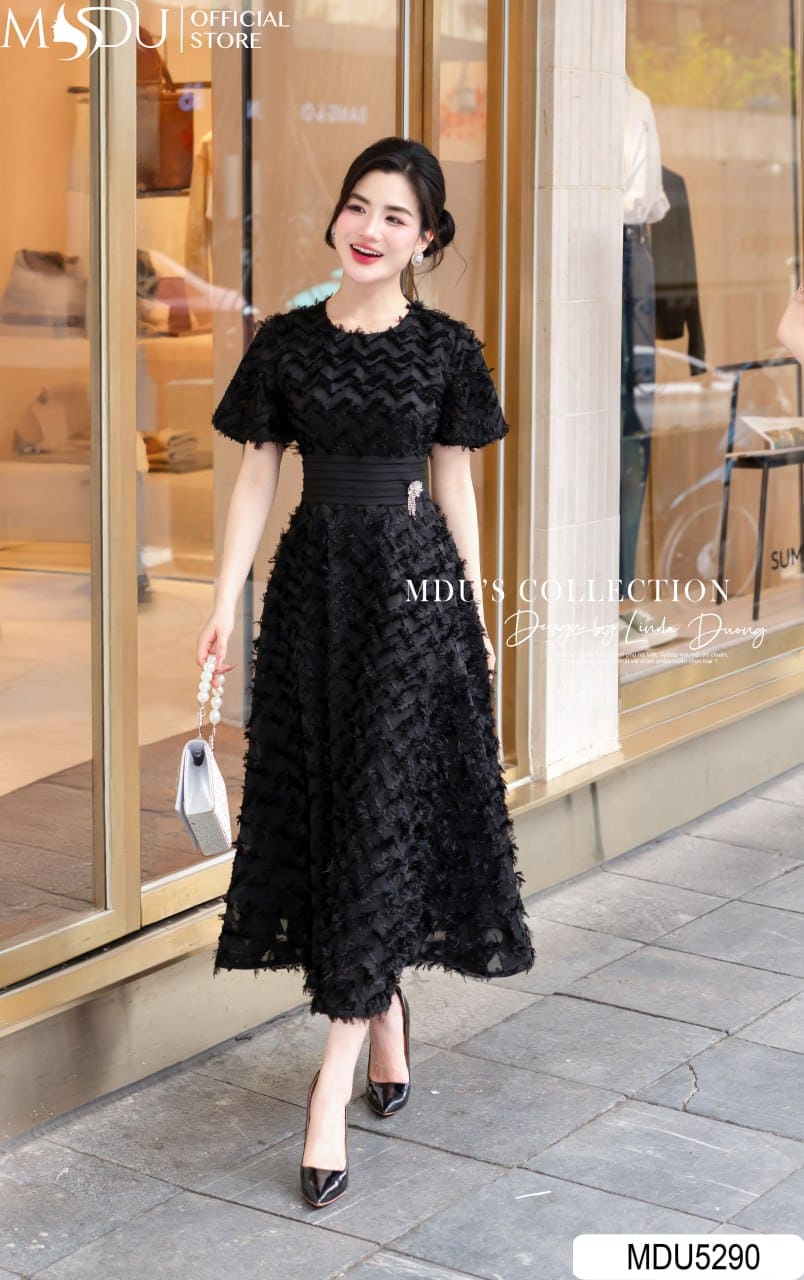 MDU Fashion hân hạnh ra mắt thiết kế MDU5290 – một tuyệt tác mang vẻ đẹp huyền bí, sang trọng và đầy mê hoặc. Được chế tác từ chất liệu lụa dệt cao cấp với bề mặt họa tiết zigzag nổi tinh xảo, mẫu váy này tạo nên chiều sâu thị giác sống động, vừa hiện đại vừa quyến rũ. Gam màu đen quyền lực kết hợp cùng dáng dài xòe nhẹ chính là chìa khóa giúp nàng tôn lên sự thanh thoát và quý phái ở mọi góc nhìn.