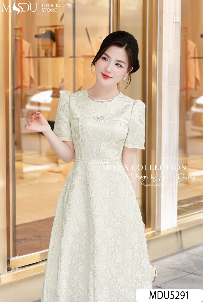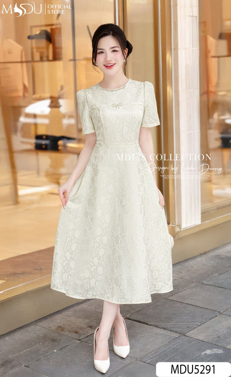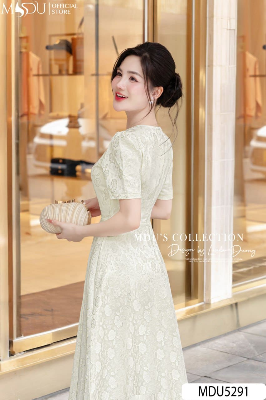 Sắc kem nhạt thanh thoát kết hợp cùng hoa văn thêu nổi duyên dáng khiến MDU5291 trở thành lựa chọn hoàn hảo cho nhiều dịp: từ những buổi dạo phố, hẹn hò ngọt ngào đến các buổi tiệc nhẹ trang trọng. Thiết kế này tôn vinh vẻ đẹp nữ tính, ngọt ngào và tự tin của người phụ nữ hiện đại – luôn thanh lịch và rạng rỡ ở bất kỳ nơi đâu.