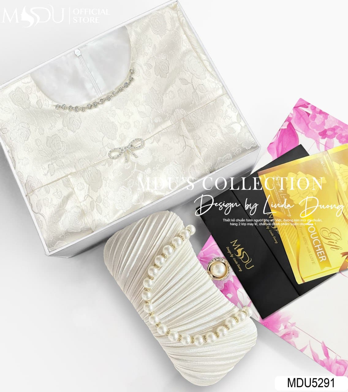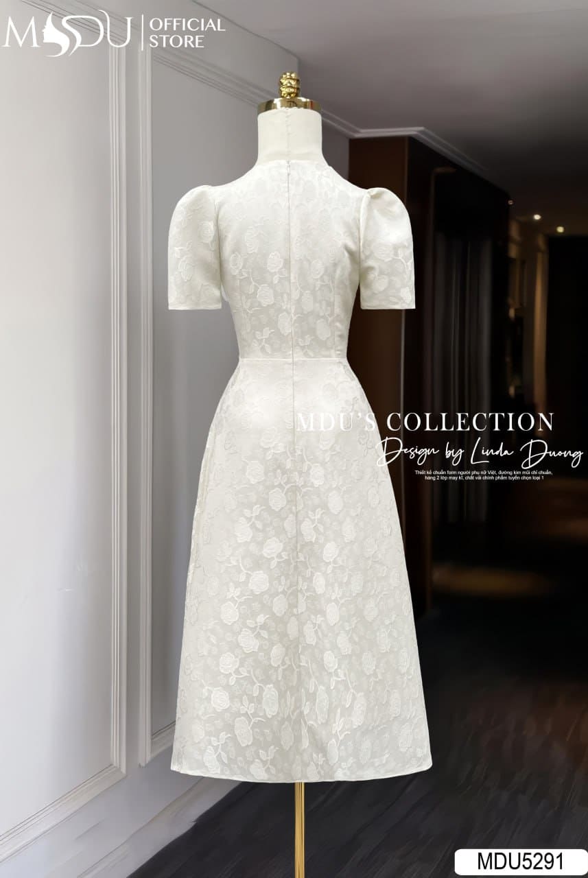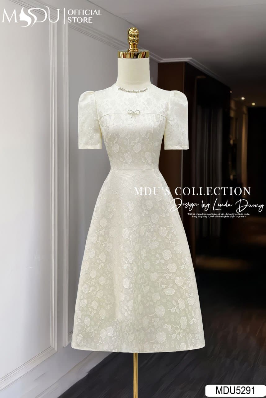 Sắc kem nhạt thanh thoát kết hợp cùng hoa văn thêu nổi duyên dáng khiến MDU5291 trở thành lựa chọn hoàn hảo cho nhiều dịp: từ những buổi dạo phố, hẹn hò ngọt ngào đến các buổi tiệc nhẹ trang trọng. Thiết kế này tôn vinh vẻ đẹp nữ tính, ngọt ngào và tự tin của người phụ nữ hiện đại – luôn thanh lịch và rạng rỡ ở bất kỳ nơi đâu.