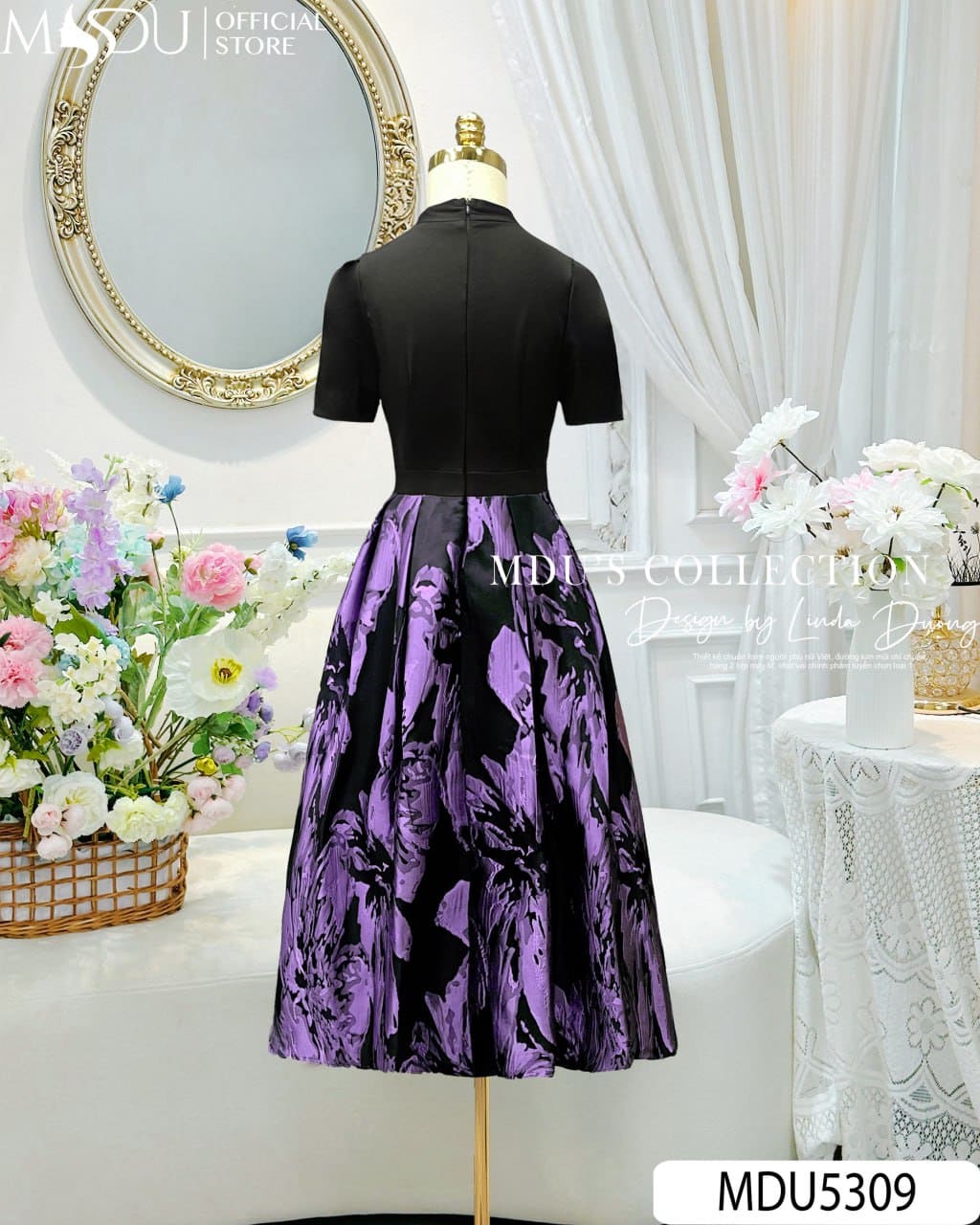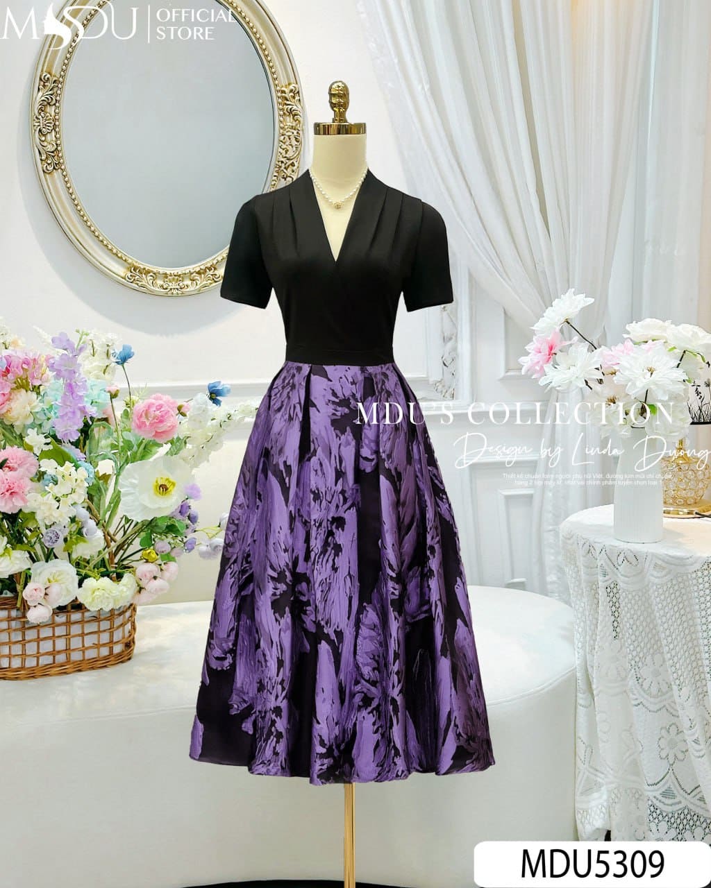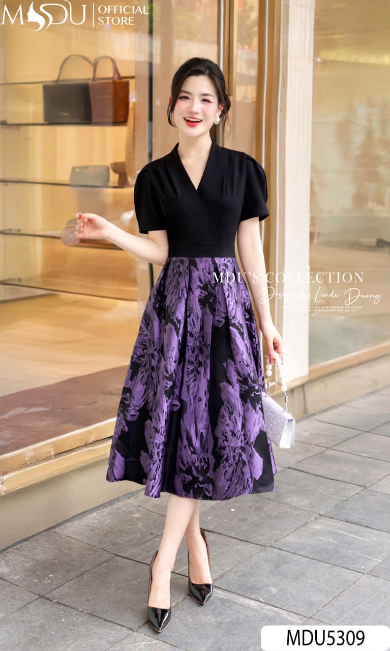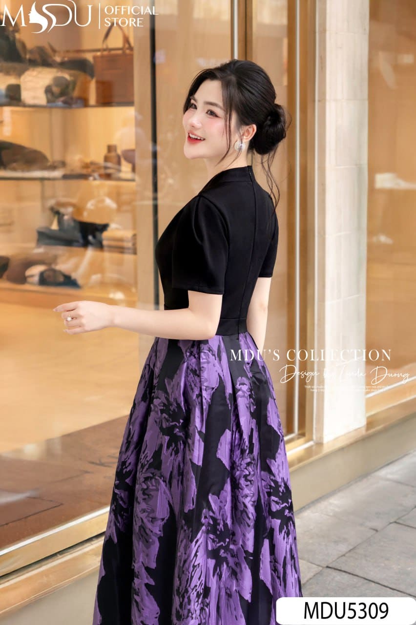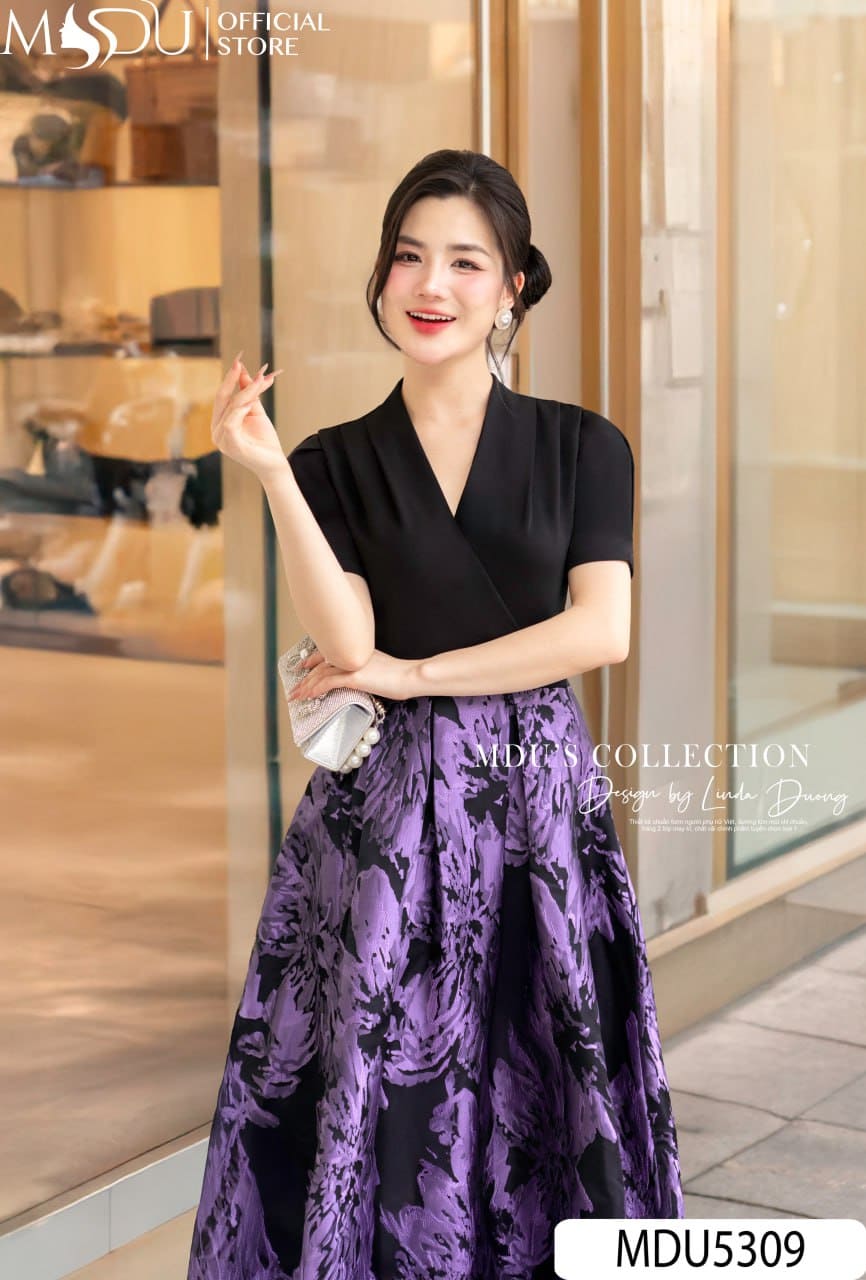 Sự kết hợp giữa sắc đen huyền bí và hoa tím loang mang đến vẻ đẹp sang trọng, nổi bật và đầy khí chất. MDU5309 chính là lựa chọn lý tưởng cho những buổi tiệc tối, sự kiện trang trọng hay những buổi gặp gỡ cần phong thái thanh lịch. Mẫu váy này tôn vinh hình ảnh người phụ nữ hiện đại – tự tin, quyến rũ và luôn rạng ngời trong mọi khoảnh khắc.