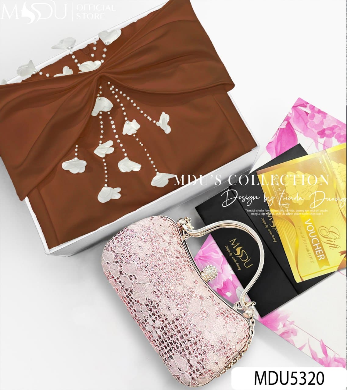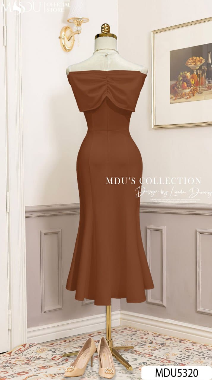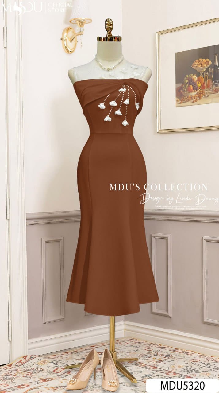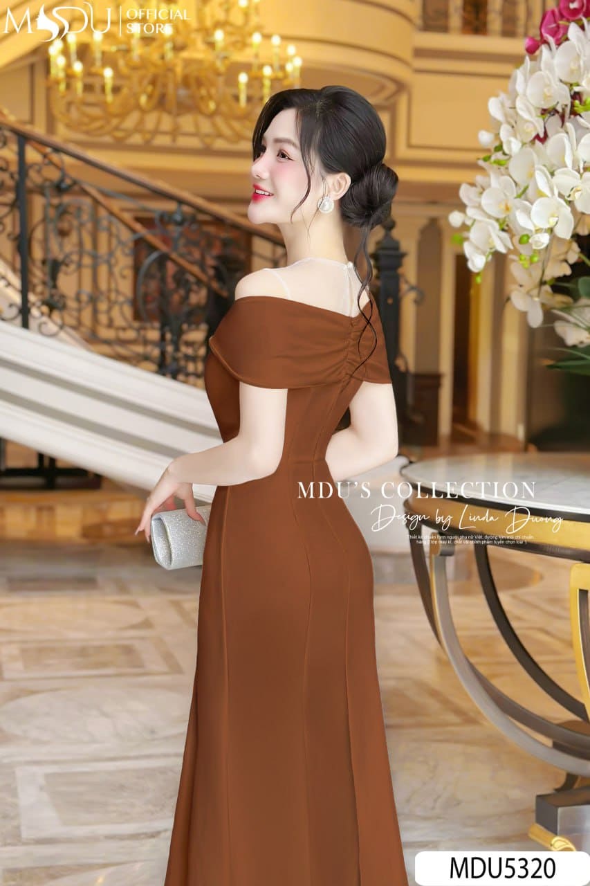 Với gam màu nâu socola sang trọng cùng phom dáng ôm nhẹ kết hợp xòe chân váy đầy duyên dáng, MDU5320 là sự lựa chọn hoàn hảo cho các buổi tiệc tối, sự kiện trang trọng hay dạ hội lộng lẫy. Thiết kế này không chỉ tôn lên nét đẹp hiện đại của phái nữ mà còn khắc họa thần thái tự tin, quý phái, giúp bạn luôn trở thành tâm điểm trong mọi không gian.