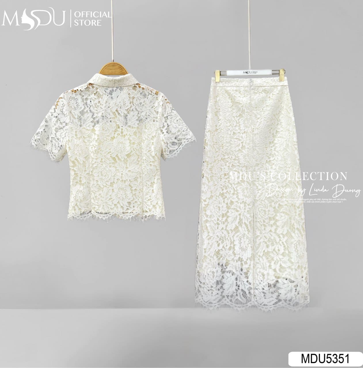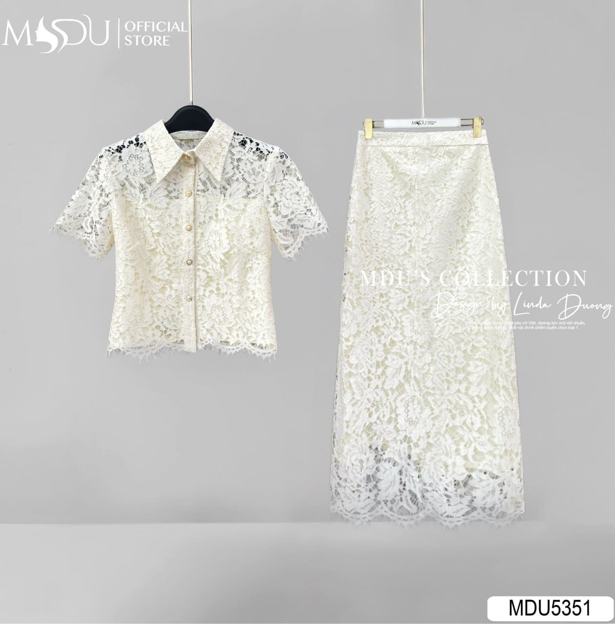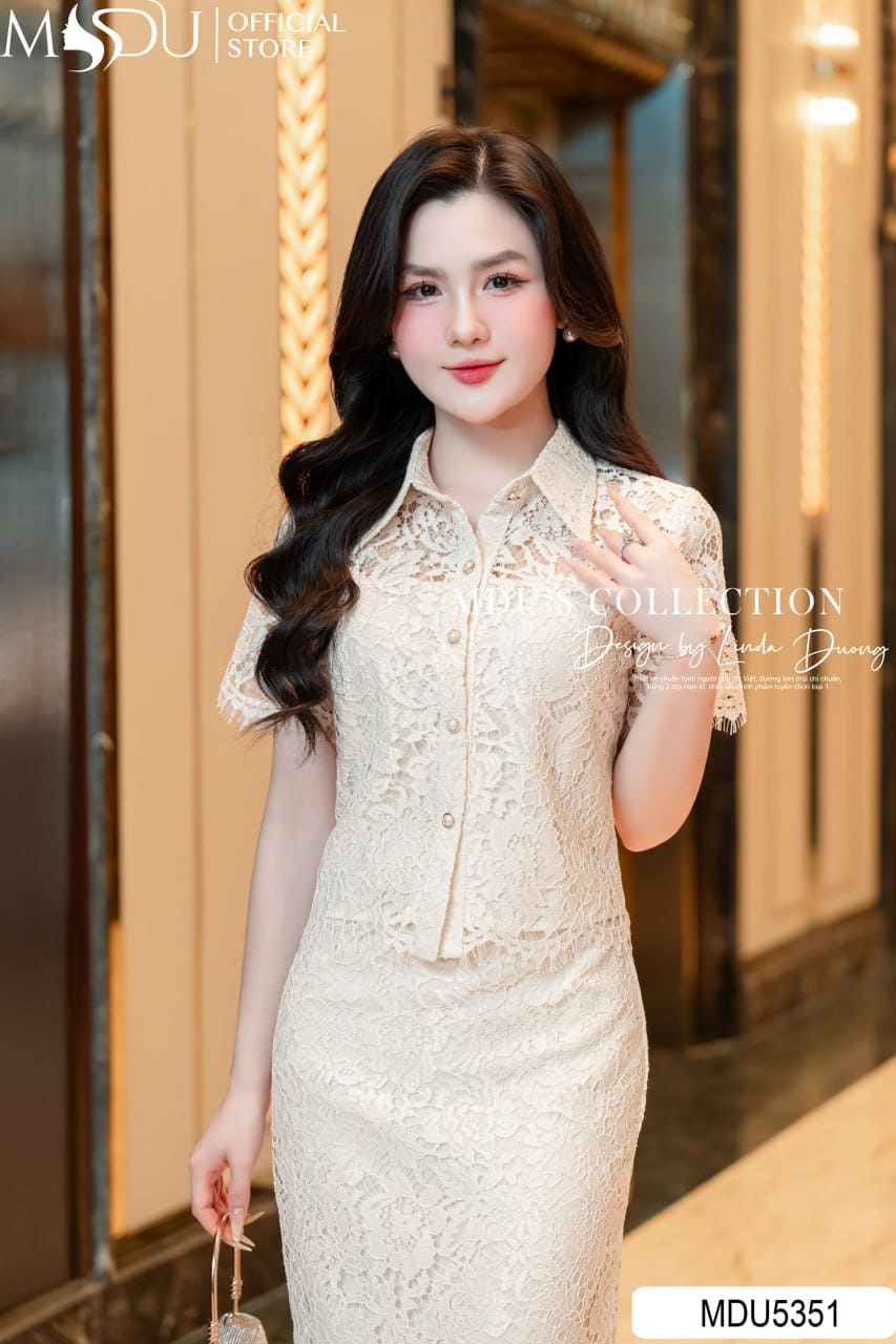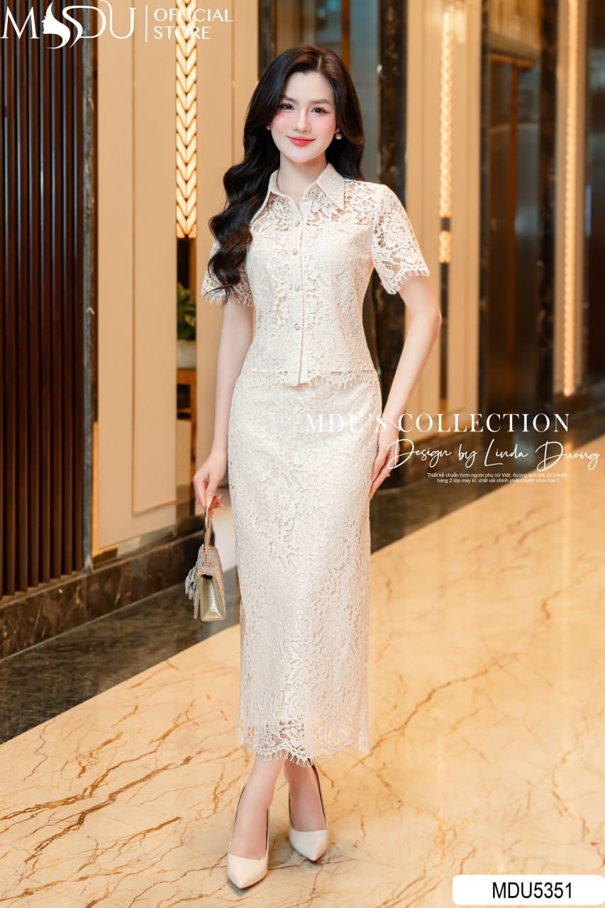 MDU Fashion hân hạnh giới thiệu thiết kế MDU5351 – một set đồ đồng bộ vừa mang nét thanh lịch, vừa giữ được sự mềm mại đầy nữ tính. Được chế tác từ chất liệu ren Hàn họa tiết nổi cao cấp, set trang phục này đem lại cảm giác sang trọng và tinh xảo trong từng chi tiết. Lớp lụa lót mềm mại bên trong giúp người mặc thoải mái trong mọi chuyển động, đồng thời giữ dáng trang phục luôn chuẩn chỉnh.