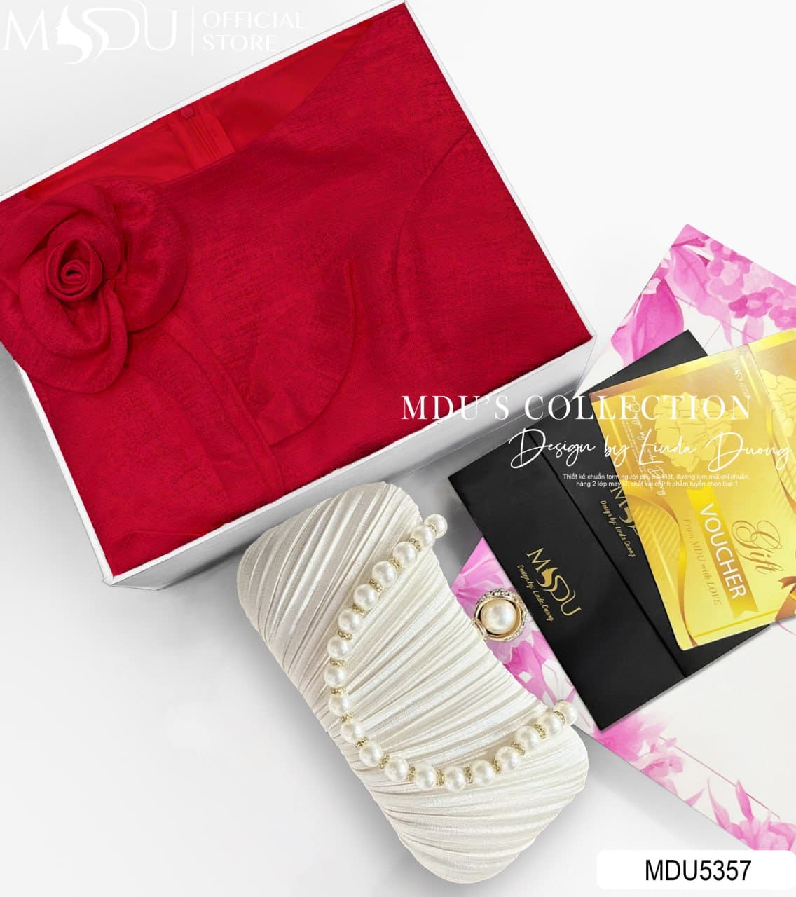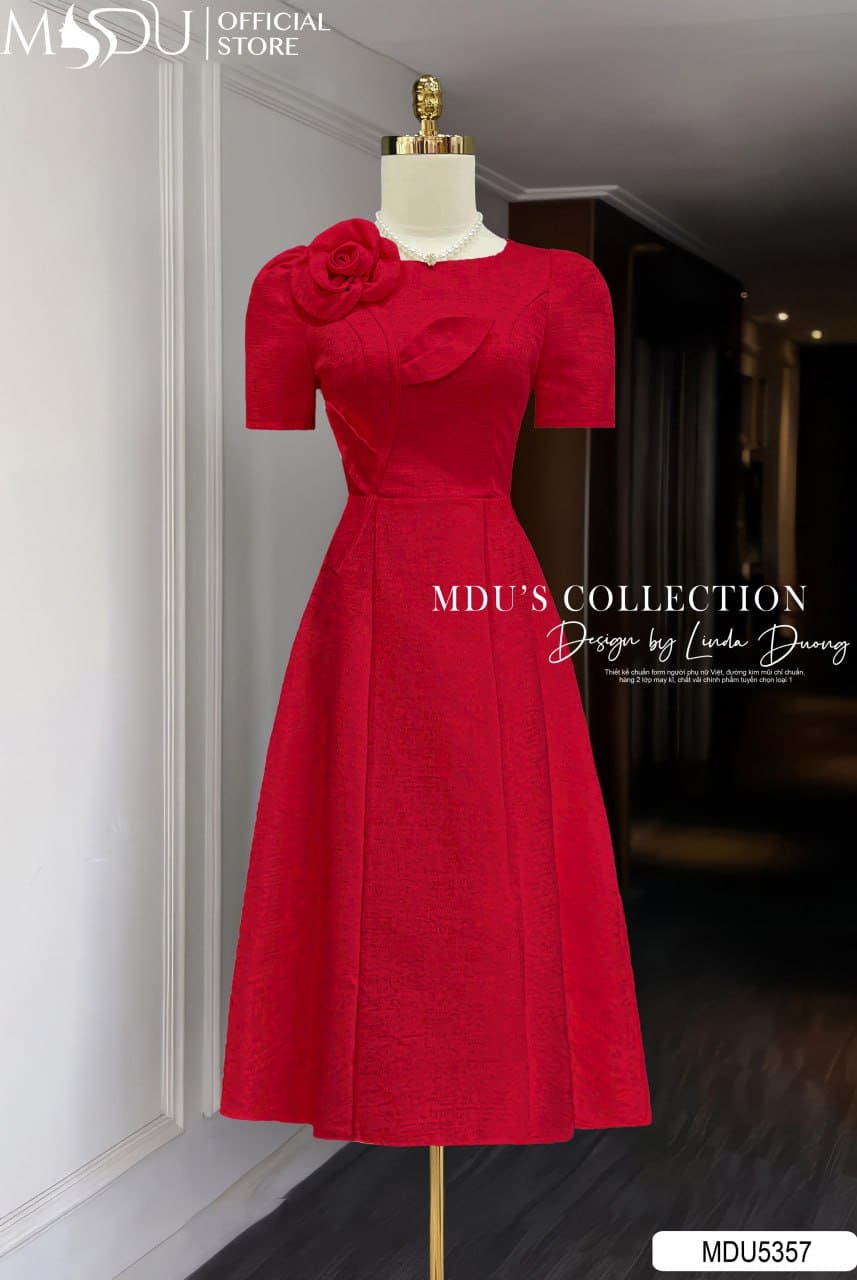 Với sự kết hợp hoàn hảo giữa chất liệu tafta cao cấp, thiết kế cổ tròn – hoa 3D duyên dáng và sắc đỏ ruby rực rỡ, MDU5357 chính là lựa chọn tuyệt vời cho những buổi tiệc tối, sự kiện quan trọng hay lễ cưới. Đây là mẫu váy giúp nàng tự tin khẳng định phong cách – nổi bật, sang trọng và đầy khí chất.