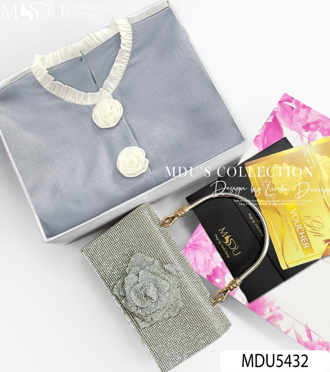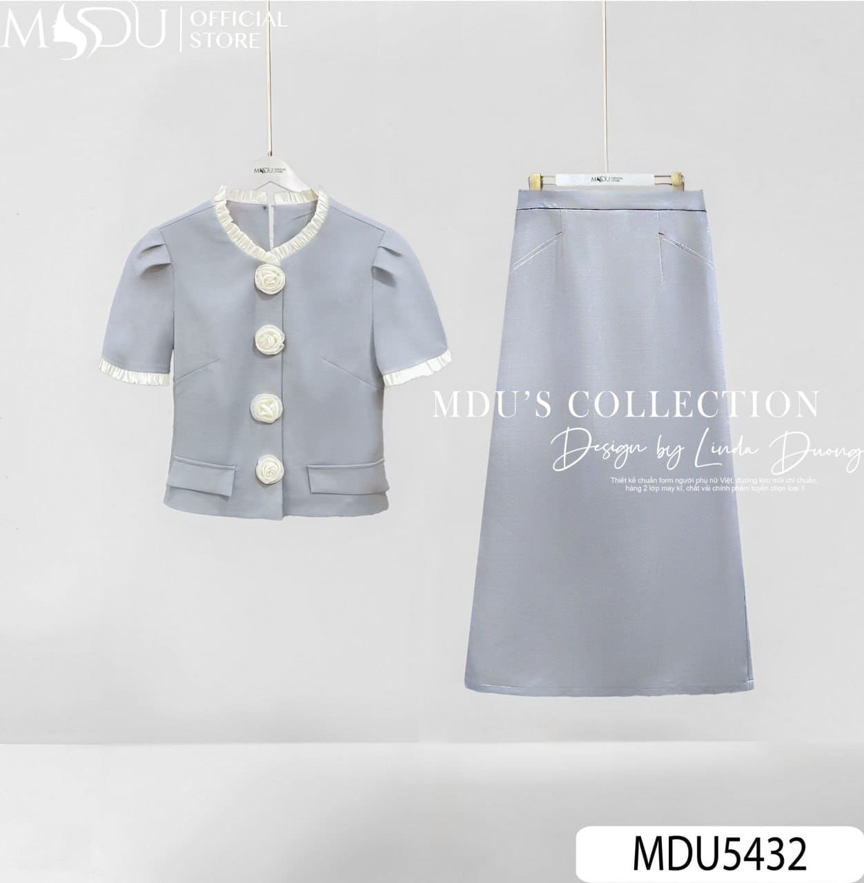 Váy Thiết Kế MDU5432 Set Chất Xước Thái Phối Hoa Nổi Thanh Lịch Và Tinh Tế