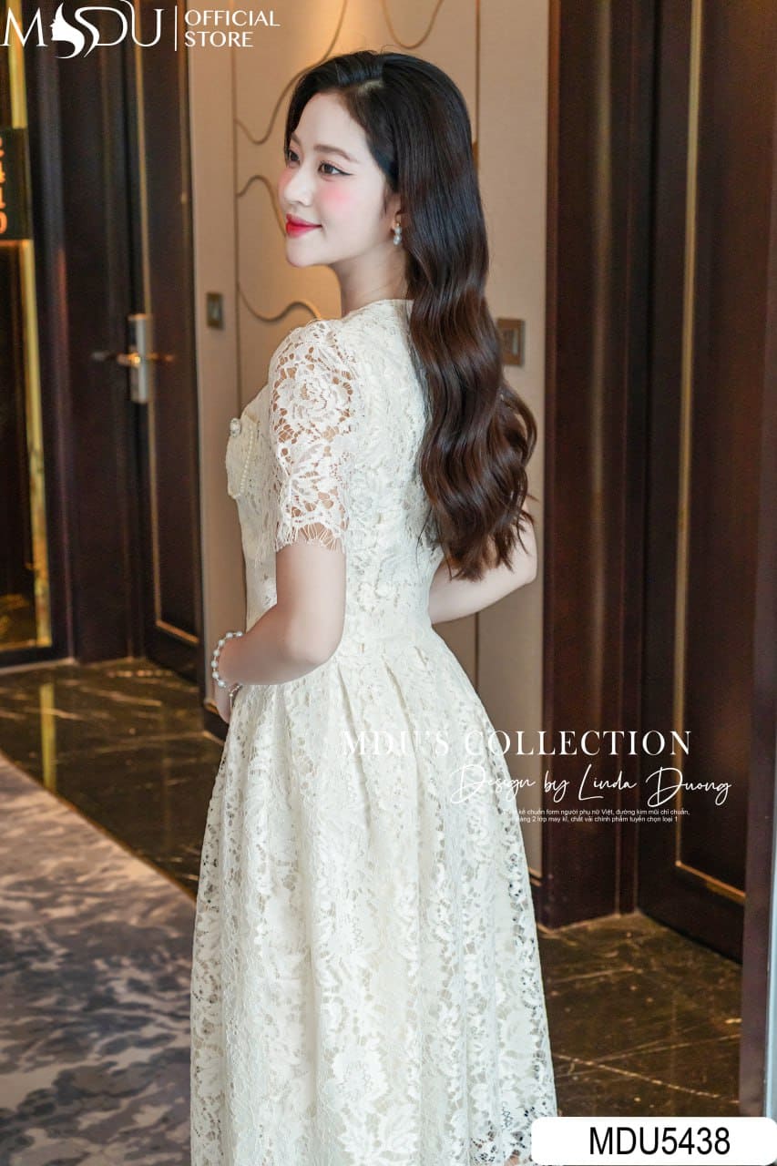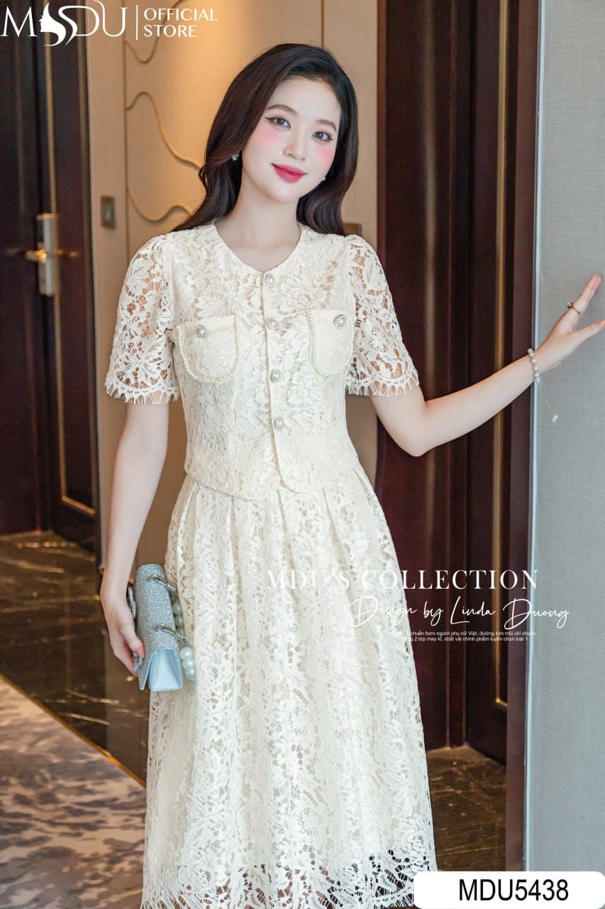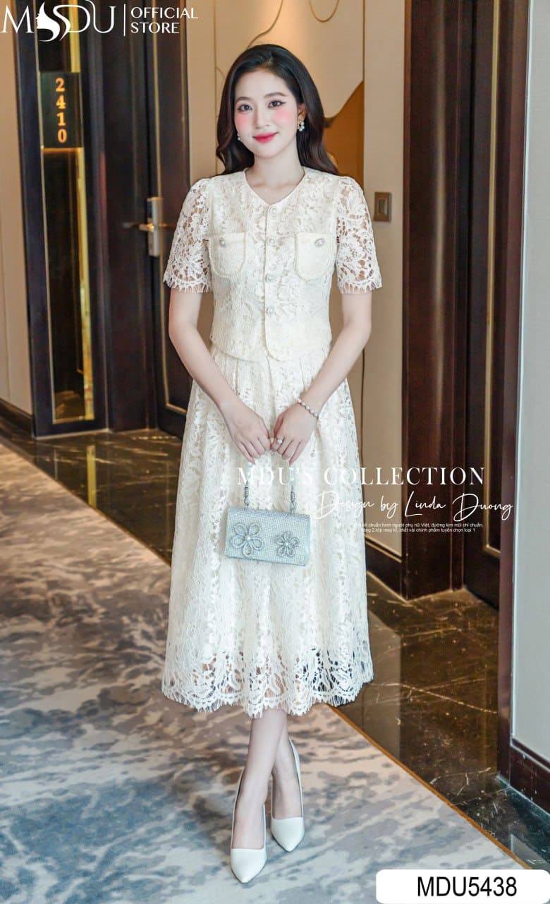 Váy Thiết Kế MDU5438 Ren Dệt Cao Cấp Set Áo Và Chân Váy Đồng Bộ Sang Trọng