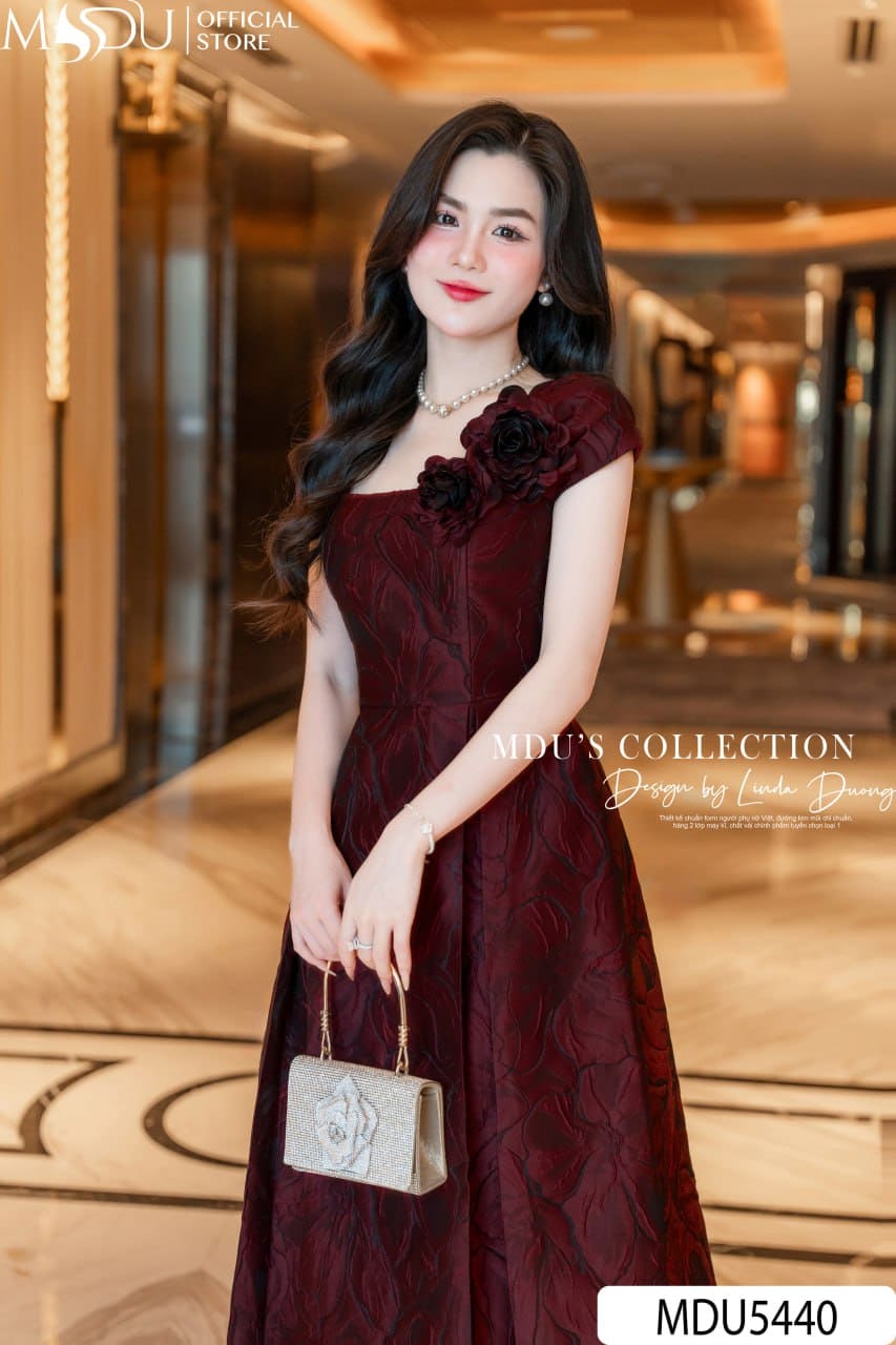 Với sự kết hợp hoàn hảo giữa gam màu đỏ đô ấm áp và chất liệu gấm cao cấp, MDU5440 chính là lựa chọn không thể thiếu trong tủ đồ của nàng hiện đại. Dù là tiệc cuối năm, sự kiện sang trọng hay dạo phố trong không khí lễ hội, chiếc váy này đều giúp bạn tỏa sáng và ghi dấu ấn khó quên.