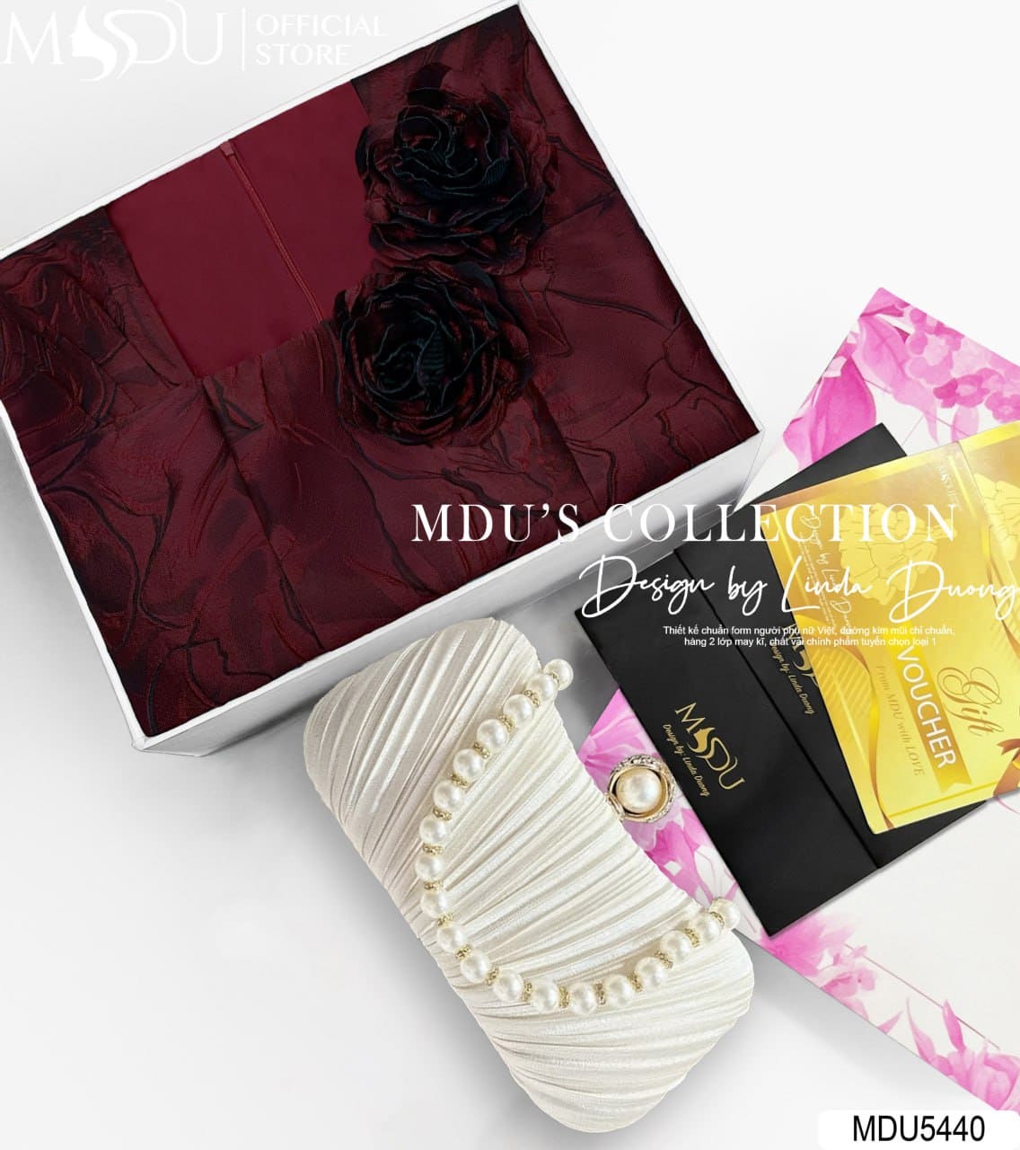 MDU Fashion trân trọng giới thiệu thiết kế MDU5440 – một tuyệt phẩm gấm vân nổi cao cấp, kết hợp giữa vẻ đẹp quyền quý và nét duyên dáng hiện đại. Chất liệu gấm vân có độ đứng phom tuyệt đối, ánh bóng nhẹ độc đáo, giúp từng bước di chuyển trở nên nổi bật và cuốn hút dưới ánh đèn. Sắc đỏ đô trầm ấm sang trọng làm nổi bật phong thái tự tin, kiêu sa của người mặc.