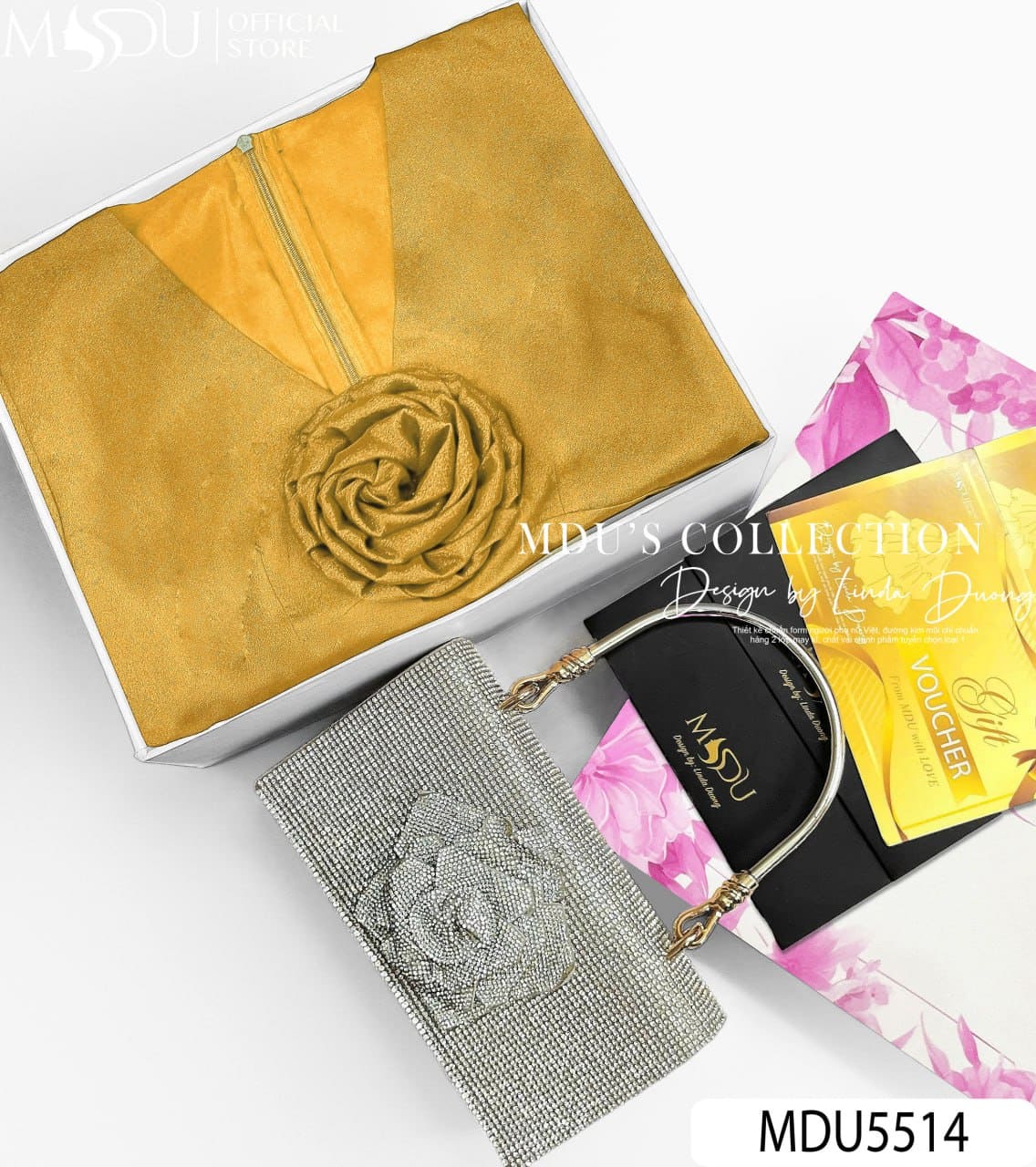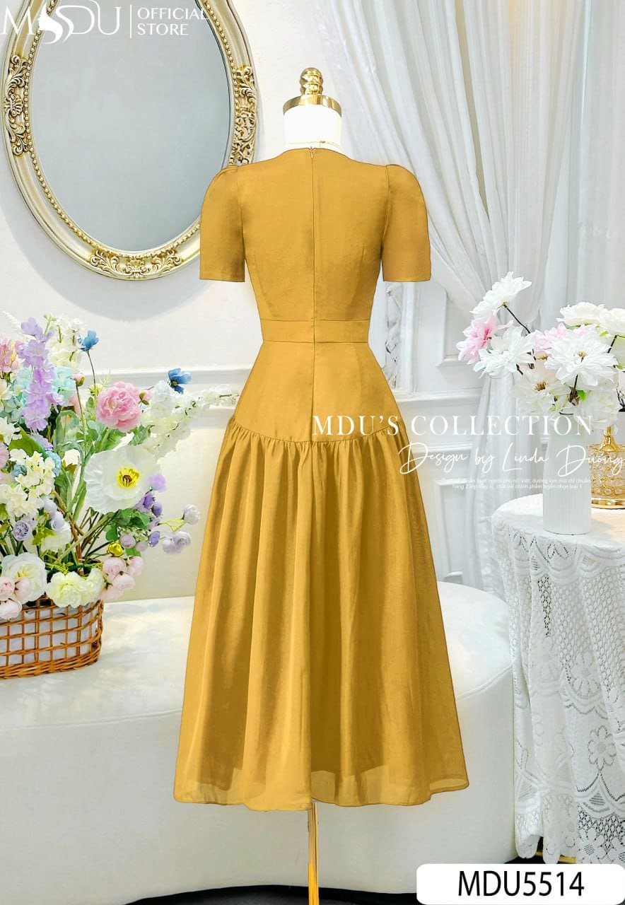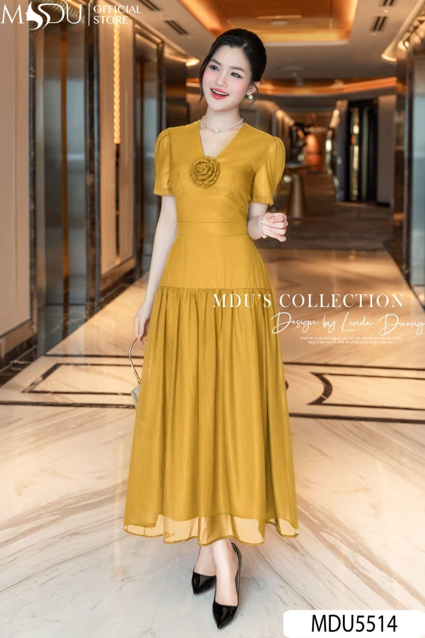 Với sắc óng nhẹ tinh khôi cùng thiết kế bay bổng, váy MDU5514 là lựa chọn hoàn hảo cho tiệc tối, sự kiện sang trọng hay những buổi lễ quan trọng. Đây không chỉ là một bộ trang phục mà còn là tuyên ngôn về phong cách – mang đến cho nàng vẻ đẹp quý phái, tự tin và tỏa sáng trong mọi ánh nhìn.