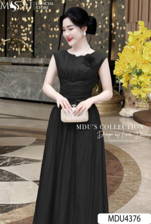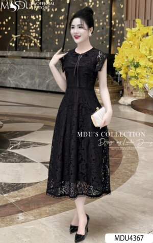 Váy Thiết Kế MDU4367 – Màu Đen Sang Chảnh Cùng Thắt Nơ Tinh Tế Với Những Đường Vân Ren Thủ Công Tỉ Mỉ