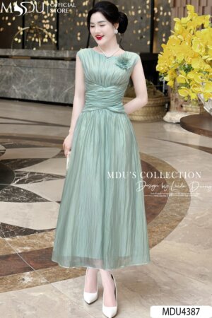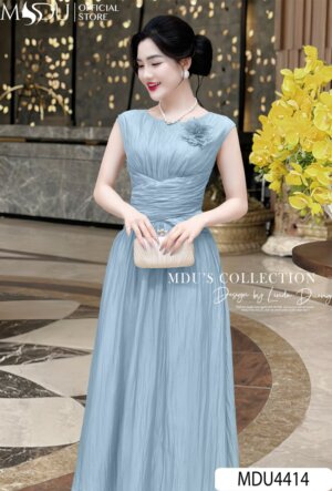 Váy Thiết Kế MDU4387 – Màu Xanh Bắt Mắt Dáng Váy Dài Thướt Tha Đính Hoa Tỉ Mỉ Tạo Điểm Nhấn