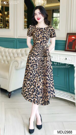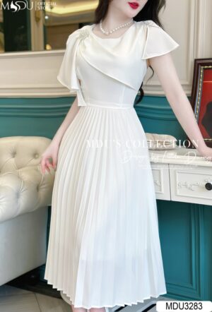 Váy Thiết Kế MDU4088 Vải Mango Hàn Chiết Eo Lạ Mắt Xếp Ly Ngực Thủ Công Dây Đính Eo Thời Thượng Và Thanh Lịch